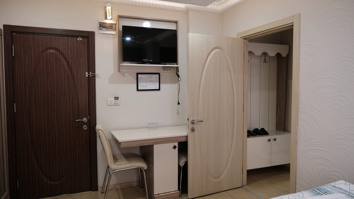 Konforlu yatak düzeni, modern banyo, klima, TV ve ücretsiz Wi-Fi ile keyifli bir konaklama ortamı sunulmaktadır.